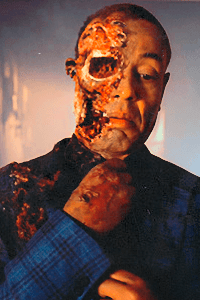 Preciso e impeccabile in ogni suo aspetto, Gus è sempre stato dipinto come un uomo invincibile, un’impressione che gli autori sembrano voler confermare anche nei suoi ultimi istanti di vita. Vi è infatti un breve e terrificante momento in cui, subito dopo l’esplosione, vediamo Fring uscire dalla stanza di Hector sulle proprie gambe, all’apparenza indenne, intento solamente a raddrizzarsi la cravatta. Basta una breve panoramica della telecamera, tuttavia, per rivelare come metà del suo volto sia saltata in aria, una visione mostruosa che, per la prima volta, sembra oggettivare la doppia natura del personaggio. Destinata a imprimersi nella memoria collettiva per gli anni a venire, la débâcle di Gustavo Fring si configura come il massimo tributo possibile a uno dei villain più iconici della serie, così come al suo interprete, Giancarlo Esposito, che per il ruolo riceverà tre volte la candidatura agli Emmy.